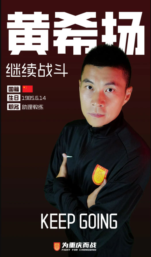 原标题:重庆铜梁龙公布教练组名单,黄希扬转型助理教练