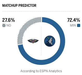 九游体育在线直播、九游体育足球直播、nba直播、电竞直播平台、九游体育赛事视频、体育直播平台-ESPN预测明日比赛:鹈鹕胜率27.6%,森林狼胜率72.4%